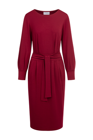 Virginia - Bordowa sukienka z dzianiny strukturalnej z wiązaniem