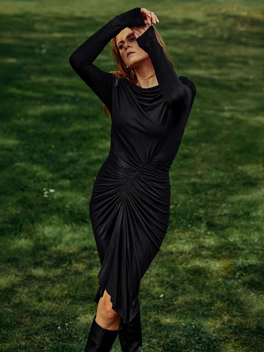 Corsica - Czarna sukienka drapowana ECOVERO™
