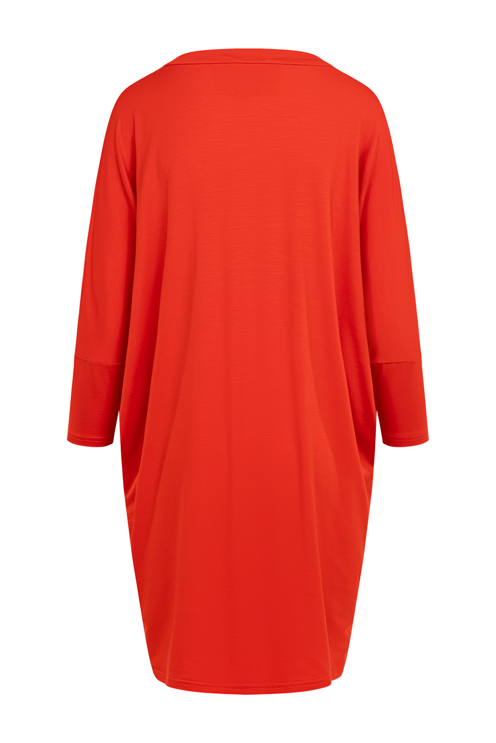 • Najniższa cena z 30 dni przed obniżką 299,99 zł. Oversizowa sukienka mini przed kolano z rękawem 3/4. Uszyta z certyfikowanej dzianiny TENCEL™ z przędzy od Lenzing AG w kolorze Poinciana.