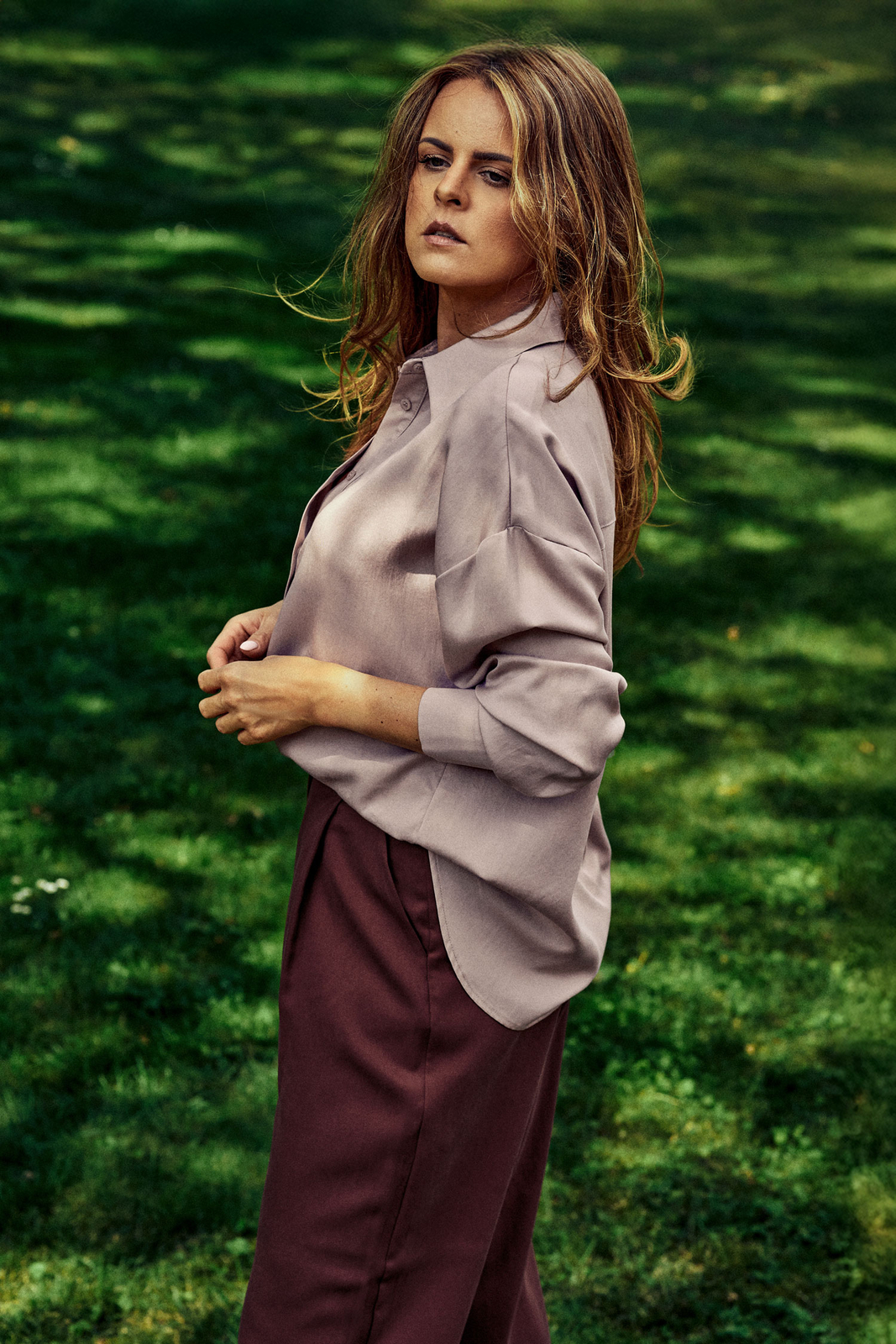 Libre - Luźne spodnie z wysokim stanem w kolorze bordowym TENCEL™