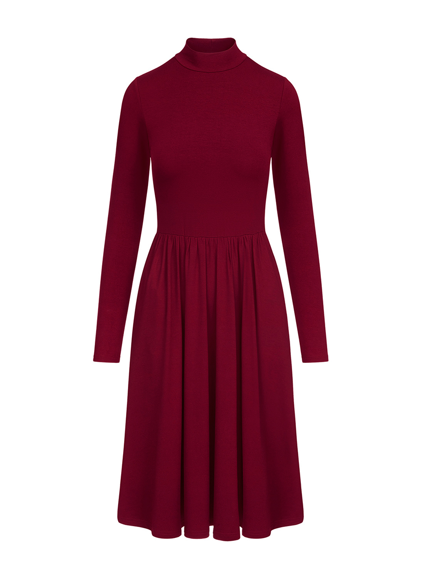 Margot - Bordowa sukienka z półgolfem ECOVERO™