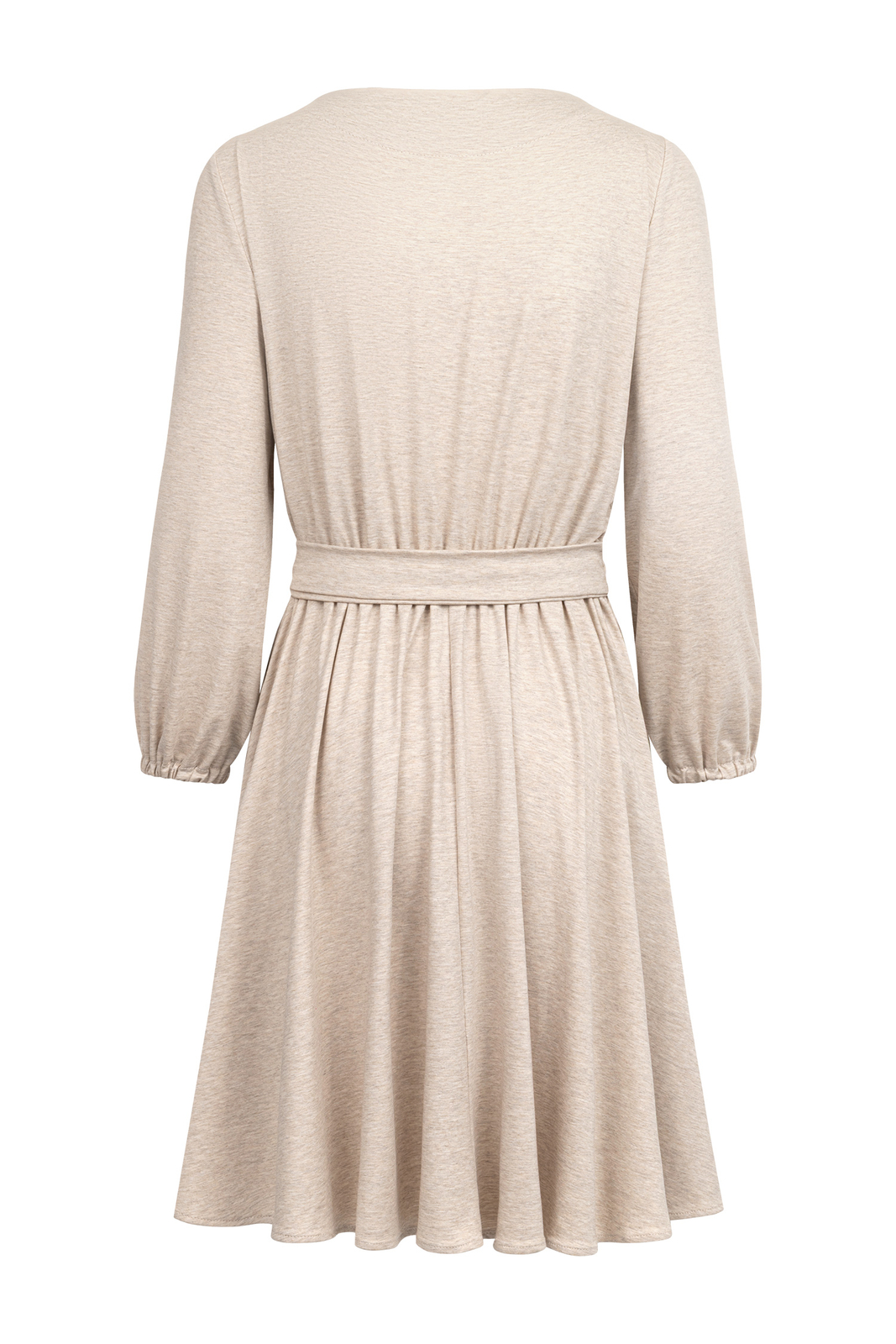 Scarlet Mini - Rozkloszowana sukienka kopertowa w kolorze piaskowym
