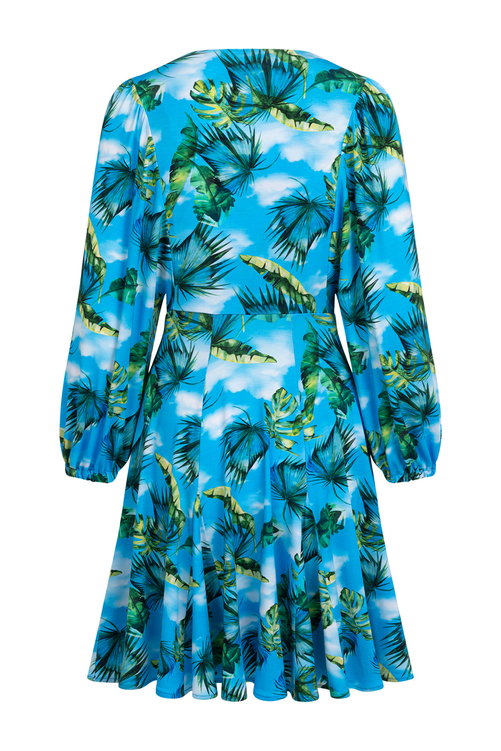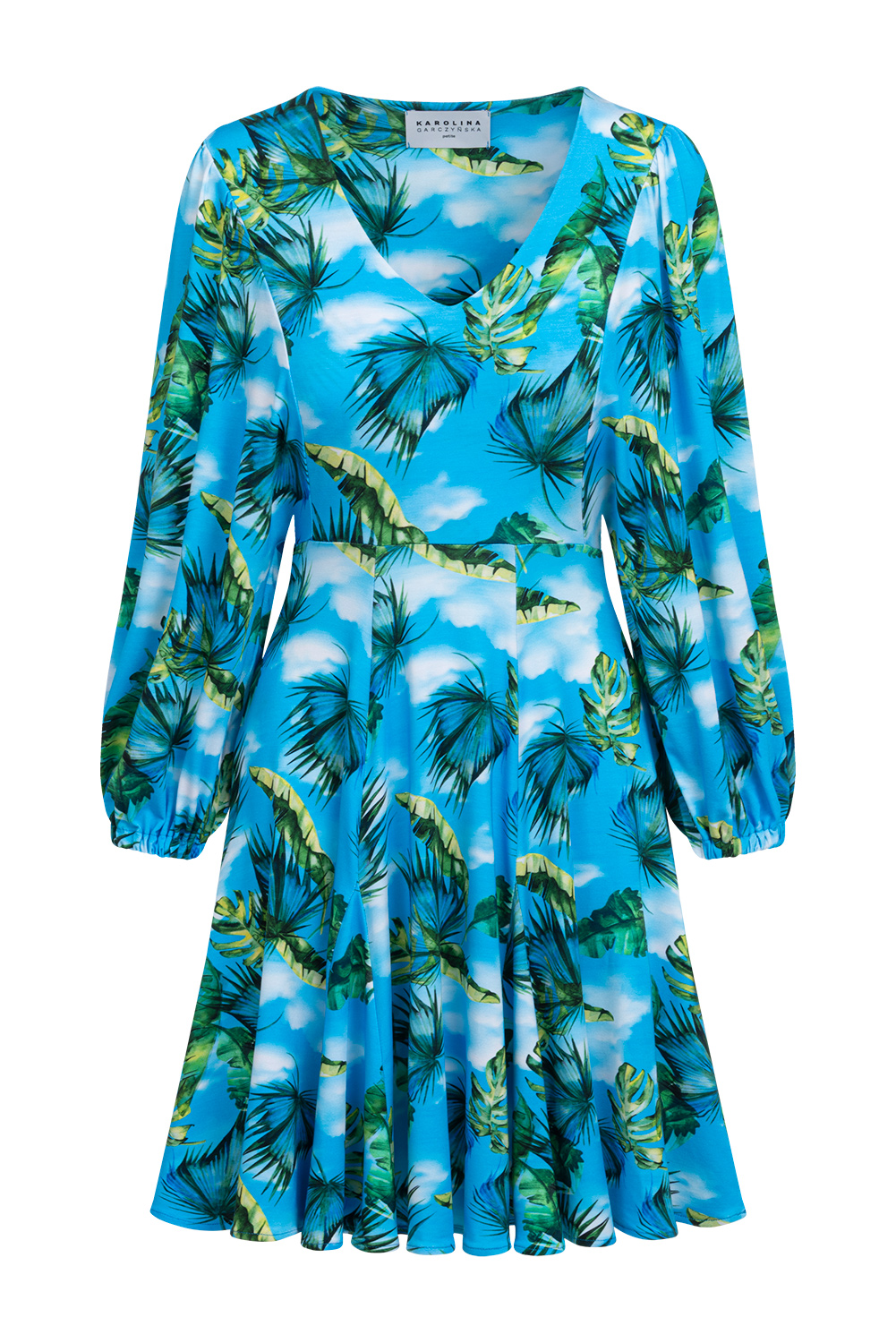 Tiffany Mini - rozkloszowana mini z marszczonym rękawem we wzorze Sky