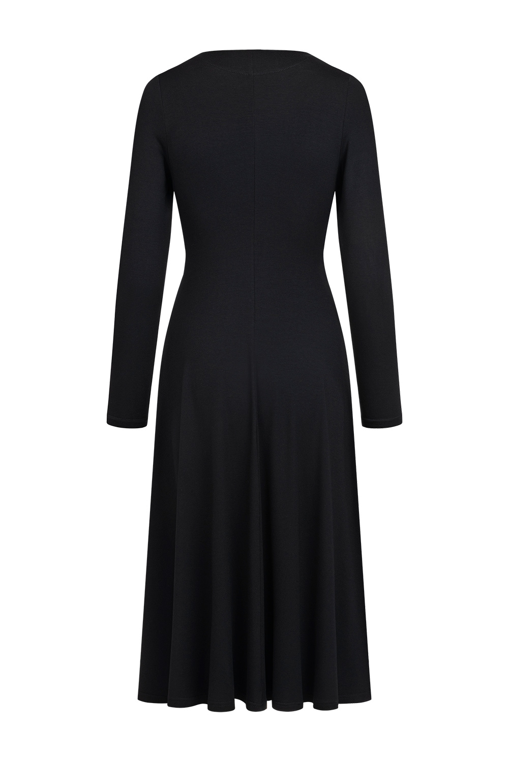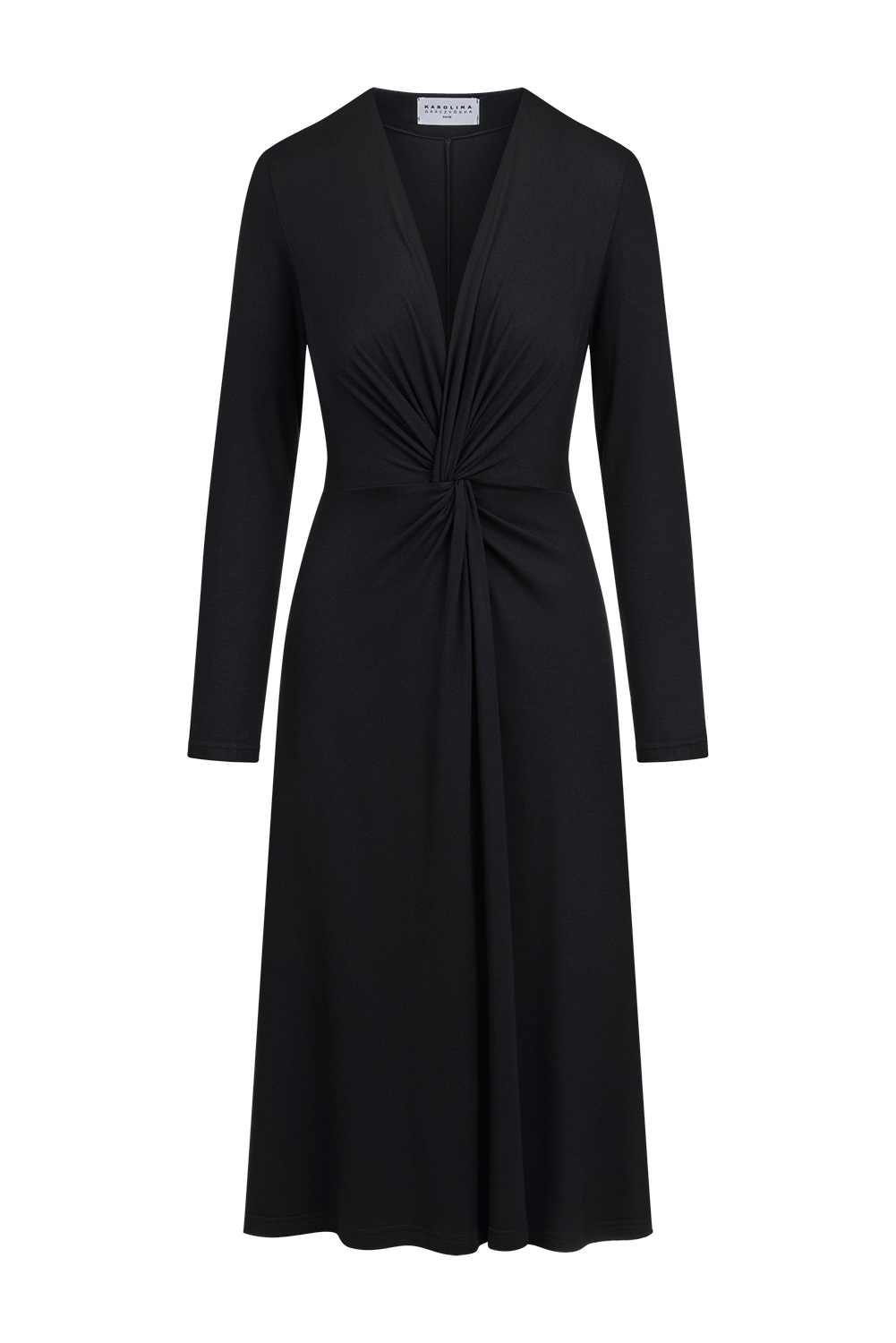 • Wersja midi modelującej sukienki, która podkreśla atuty i ukrywa mankamenty. Uniwersalna klasyka dla każdej kobiety. Z maskującym przełożeniem, rękawem, bez kieszeni. Wykonana z dzianiny wiskozowej z przędzy ECOVERO™ w kolorze czarnym.